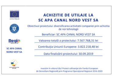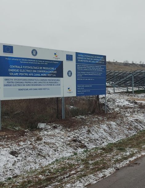 ”Centrală fotovoltaică de producere a energiei electrice din conversia energiei solare pentru Apă Canal Nord Vest SA”, finanțat prin Programul Operațional Infrastructură Mare 2014-2020.
