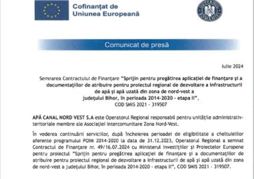 Sprijin pentru pregătirea aplicației de finanțare și a documentațiilor de atribuire pentru proiectul regional de dezvoltare a infrastructurii de apă și apă uzată din zona de nord-vest a județului Bihor, în perioada 2014-2020 – etapa II COD SMIS 2021:319507